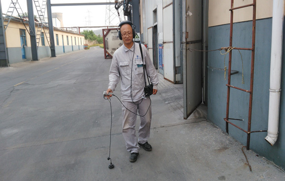 摸清企业基本情况、供用水量普查、供水、排水管网,使用日本产机械式听音棒、漏水探知机对管道进行听音,仔细分辨漏水噪声异常。经我公司技术人员细致检测,检测到漏水点1处,经过开挖验证,开挖范围水平定位精度≤±1.0m,定点准确率,漏水量为30m³/d(循环水)。